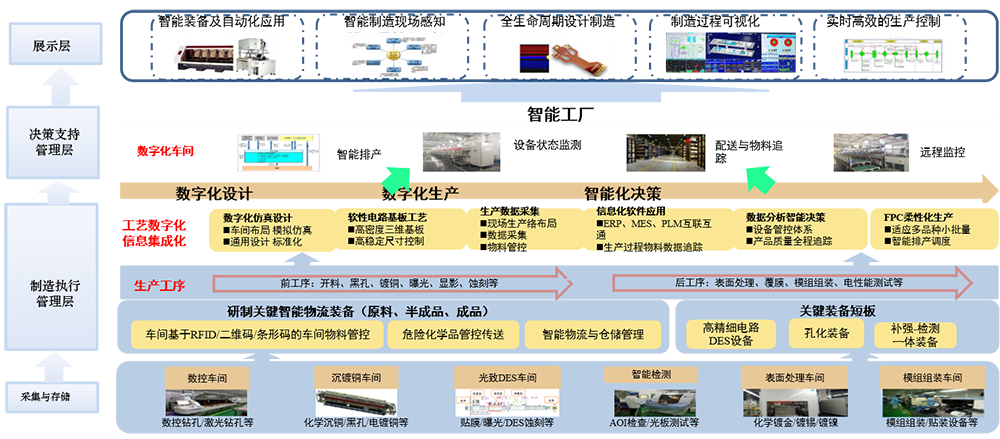该项目基于半导体柔性电路基板及其模组行业“定制化、交期短、非标程度高”的典型离散型制造特点,集成整合了ERP、MES、PLM等核心业务应用系统,实现装备、信息系统、产线之间的信息互联互通,高效协同和管控;