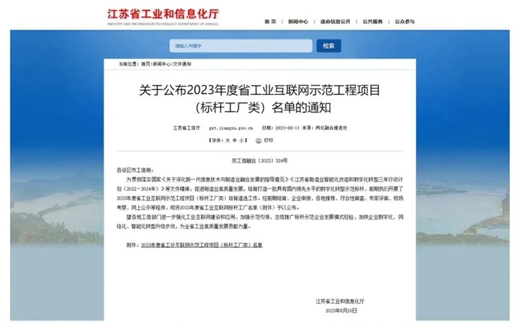 近日 江苏省工信厅公布了 2023年度省工业互联网示范工程名单